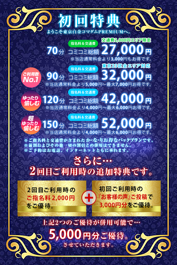 マンスリーキャンペーン デリヘル 東京白金コマダムPremium